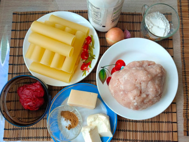 Точно указано количество ингредиентов, фарша у меня хватило ровно на взятое количество макарон, фарш у меня был свино-куриный, для фарша использовала томатную пасту. По шагам приготовила начинку и оставила остывать. В это время занялась приготовлением соуса, тоже в рецепте подробно описано его приготовление, получилось хорошо. Самым трудоемким было с непривычки начинять фаршем каннеллони, но к концу приладилась. Выложила на дно формы в один слой как рекомендовано, залила соусом и посыпала сыром. В моей духовке также до румяной корочки запекалось 35 минут. Получилось очень вкусное и сытное блюдо, спасибо автору за подробный рецепт!