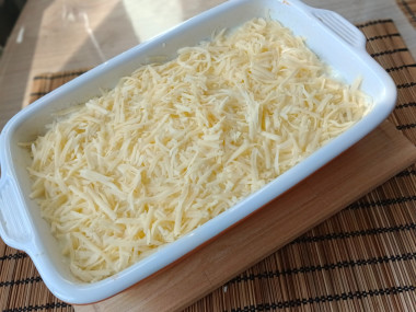 Залейте каннеллони оставшимся соусом бешамель. Если макароны будут без соуса, то в духовке они могут пересушиться и будут не вкусными. Посыпьте их сверху натёртым сыром. Поставьте форму в предварительно разогретую духовку на 30-35 минут до образования румяной корочки.