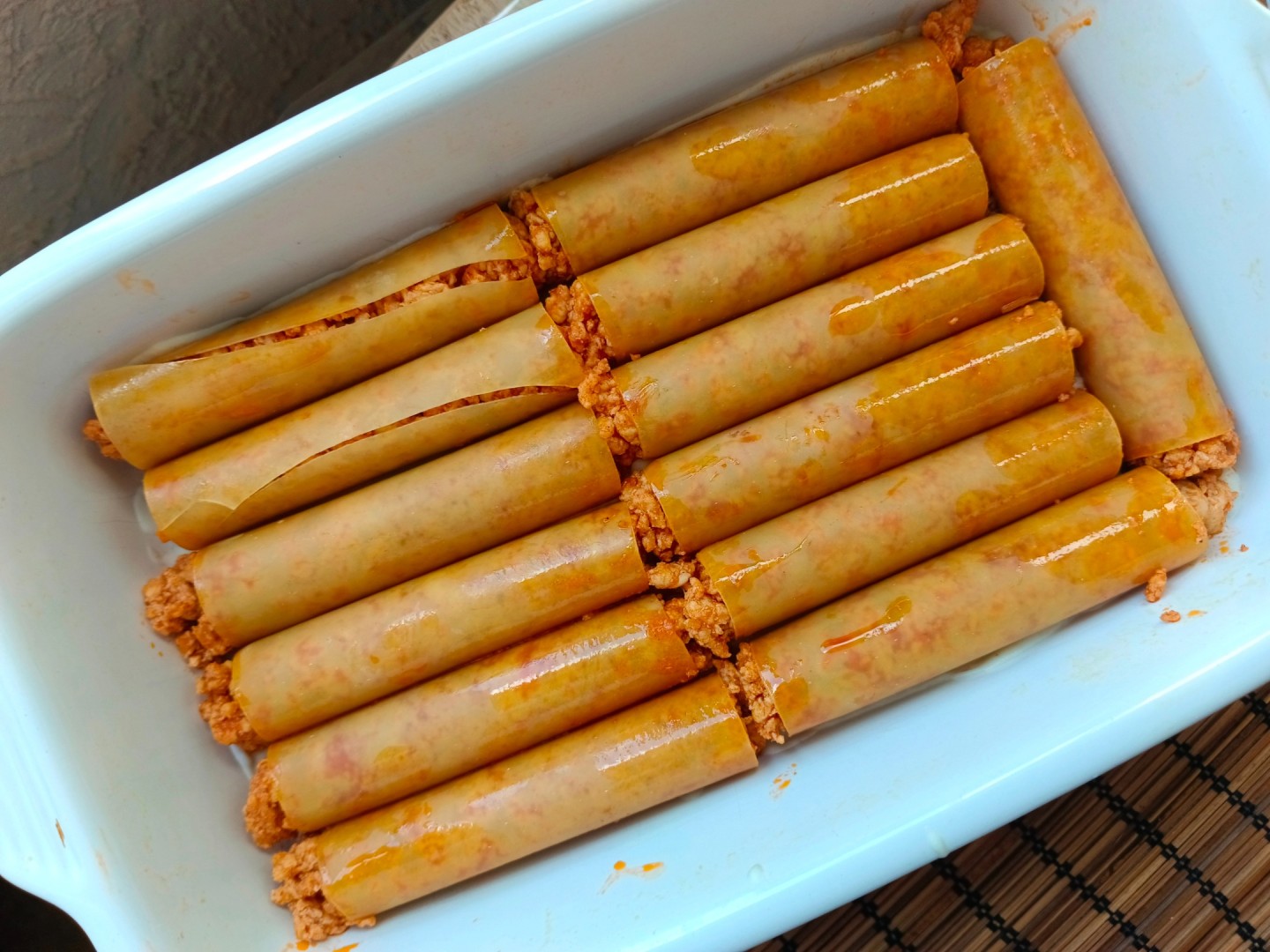 сегодня решила попробовать это блюдо. все делала по рецепту, но напихивать лучше пальцами прямо над сковородой (естественно остывшим фаршем :) ) в горизонтальном положении, прикрыв пальцами другой конец... :). Еще блюдо не запекала, отвечу позже.