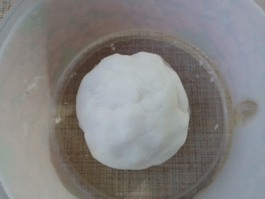 Когда масса слегка остынет, замесите руками мягкое эластичное нелипкое тесто, при необходимости подсыпая понемногу еще рисовой муки. По консистенции тесто должно напоминать мягкий пластилин. Оно не должно рассыпаться в руках. Если тесто рассыпается и не формируется в единый ком, добавьте еще немного горячей воды.