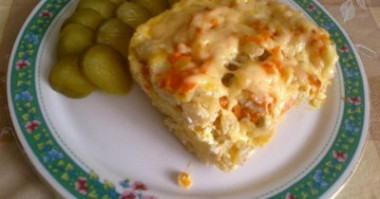 Запеканка удалась на славу. Нежная "суфлейная" консистенция. Рыба получилась совсем не сухой. И морковь в блюде не чувствовалась. Подавала с картофельным пюре и салатом из свежих овощей. Все остались довольны.