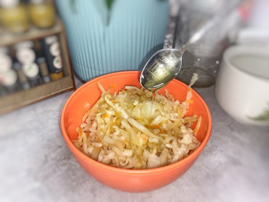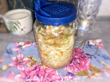 Капуста с мёдом квашеная привлекла меня и я решила попробовать, потому что обожаю квашеную капусту, а с мёдом раньше не ела. Подходящий небольшой кочан уже ждал своего часа. Постаралась нарезать капусту помельче, но получилось как получилось. Соли можно было бы добавить чуть больше — это я поняла позже. Добавила морковь и хорошенько пожала всё. Убрала в банку, но тут поняла одну вещь: лучше было бы придавить капусту чем-то потяжелее, поскольку сока выделилось немного, видимо, сама капуста была такой. Время от времени проверяла её. Мёда добавила побольше, и по вкусу получилось идеально — сочетание соли и сладости мёда мне понравилось. Полила нерафинированным маслом, ведь именно с ним я особенно люблю квашеную капусту, и с удовольствием съела порцию, очень вкусно. Спасибо за рецепт!