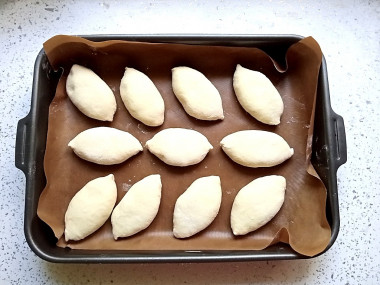 Сформированные пирожки полежали на расстойке минут 15, за это время немного увеличились в размере. Выпекала их 25 минут при 180 градусах.