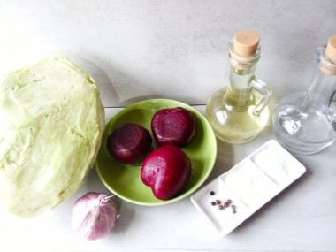 Приготовьте все продукты. Свёклу подготовьте чуть заранее. Капусту используйте поздних сортов, она более хрустящая и плотная. Свёклу хорошо помойте, лучше при помощи щётки или жёсткой губки, чтоб избавиться от остатков земли.
