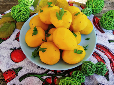 Вареная картошечка отлично сочетается с различными соусами. Готовится очень легко, а получается очень сытно.