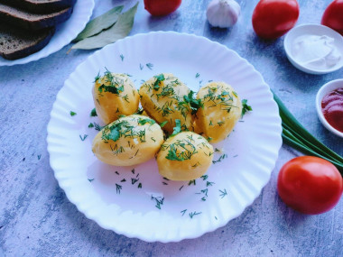 К курочке приготовила сегодня гарнир из отварного картофеля. Это простое, но вкусное и питательное блюдо, которое я люблю и часто вспоминаю с теплотой и ностальгией. Как заметил автор рецепта, это блюдо отправляет нас в детство Любовь . Картофель у меня домашний, отваривала 20 минут с момента закипания. При варке зелень добавлять не стала, решила посыпать готовое блюдо. А вот добавить лавровый лист, это для меня было настоящее открытие. Картошечка получилась необычайно вкусной и ароматной. Слопали с удовольствием Танцую