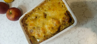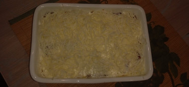 Посыпьте тертым сыром. Поставьте в предварительно разогретую до 180°С духовку на 40 минут до появления на сыре румяной корочки.