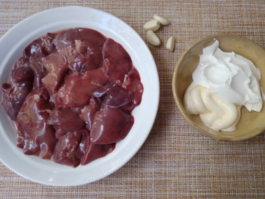 Как запечь куриную печень с сыром? Подготовьте ингредиенты. Для приготовления куриной печени, запеченной под сыром, нам понадобится: куриная печенка; сыр; майонез; сметана; чеснок; черный молотый перец и соль.