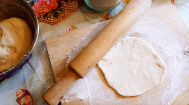 Тесто получается мягким, нежным, оно хорошо раскатывается и не рвëтся. Из него у меня вышло девять лепёшек диаметром в среднем восемь сантиметров.