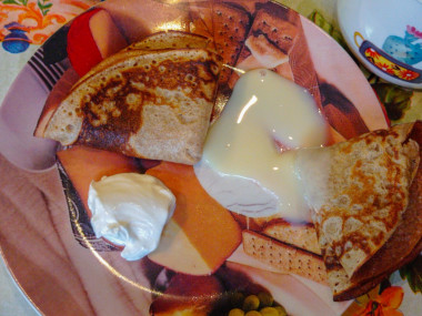 Блины готовы, подавайте их к столу со сметаной, сгущенным молоком или вареньем. Приятного аппетита!