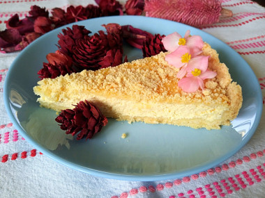 Очень люблю творожную выпечку, а Царская ватрушка с творогом - один из самых вкусных творожных пирогов! Ватрушку обычно пеку в ночь, чтобы она успела хорошо охладиться и домашние не успели растащить ее ещё теплой) Крошка у меня сначала получилась суховатой, но с добавлением ложки воды все пришло в норму. При приготовлении начинки обнаружилось, что закончился сахар, получилось 100 г. В магазин бежать было поздно, поэтому добавила в творог 50 г. мятно-лимонного сиропа. Заодно и ароматизатор натуральный получился) Песочную крошку утрамбовала донышком стакана. Воспользовалась широкой формой, чтобы пирог получился более плоским, мне так больше нравится. Выпекала ровно 50 минут. Начинка действительно сначала сильно поднялась, но в процессе охлаждения осела. Пирог из формы вынула только перед нарезкой. Охлаждался он всю ночь в холодильнике. А утром у нас на завтрак был замечательный песочно-творожный пирог. Песочная основа хрустящая и вкусная, пропеклась отлично. Начинка очень нежная, похожа на суфле. Вообще ватрушка довольно сытная, одним кусочком вполне можно наесться) Такой пирог отлично подойдет для праздничного стола, к тому же его можно приготовить заранее и хранить в холодильнике до чаепития.