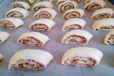 Недавно в ленте увидела этот рецепт и сразу решила, что сохраню его. Тем более орехи еще есть в запасе) Я люблю песочную выпечку, но не люблю ждать, когда оно остынет в холодильнике. Поэтому этот рецепт как раз для меня. Тесто замесила в блендере, теперь это мой любимый способ! Я и все остальные ингредиенты в чашу добавила, хорошо, что объем чаши позволяет. Потом просто выложила тесто на стол и скатала шар. Очень удобно! Тесто получилось мягким, приятным на ощупь. Раскаталось тоже прекрасно, мукой только слегка припылила стол. Орехи для начинки тоже перемолола в блендере, получилась очень мелкая однородная крошка, не пыль. Рулетик скатывала с длинного конца, а то слоев получилось бы слишком много. Нарезать рулет тоже легко. Выпекала печенье 15 минут до легкого румянца. За это время печенье полностью пропеклось, внутри тесто хорошо пропеченное, ничего сырого нет. Получилось довольно много. Печенье мягкое, насыщенно ореховое. Оно не сладкое, только в начинке немного чувствуется сахар. Дочка у меня вообще в восторге, еле оттащила от печенек) С холодным молоком вкуснее всего на мой взгляд.