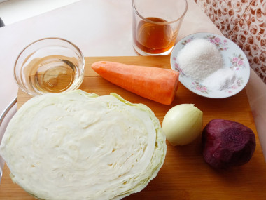 Как сделать салат из свежей капусты и свеклы? Ничего сложного тут нет. Для начала подготовьте ингредиенты по списку. Свеклу желательно выбирайте молоденькую, сочную, не вялую, с упругой кожицей. Если свекла мелкая, можете взять не 2 штуки. Растительное масло можете использовать любое по своему вкусу. Если у вас нет яблочного уксуса, можете заменить его обычным столовым или винным уксусом крепостью 6%.