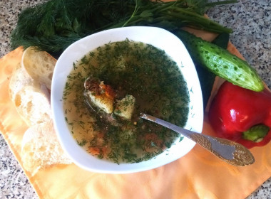 Использовала не голову и хребет, а целиковую тушку, потому как из свежих на рынке удалось найти только таковую. Ну и в качестве дополнения добавила горсть пшенки, которую часто кладут в уху. В результате получилось очень вкусное и полезное блюдо, благодаря которому удалось разнообразить повседневное меню.