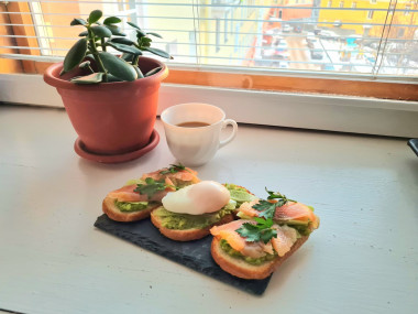Можно скомбинировать и сделать большой тост типа яйца-бенедикт. На тост намажьте авокадо, затем положите кусочек рыбы или ветчины, сверху яйцо-пашот. И обязательно полейте сверху голландским соусом!