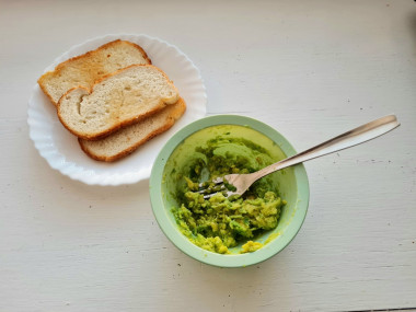 Разомните мякоть авокадо вилкой. Добавьте сок лимона и немного соли по вкусу.