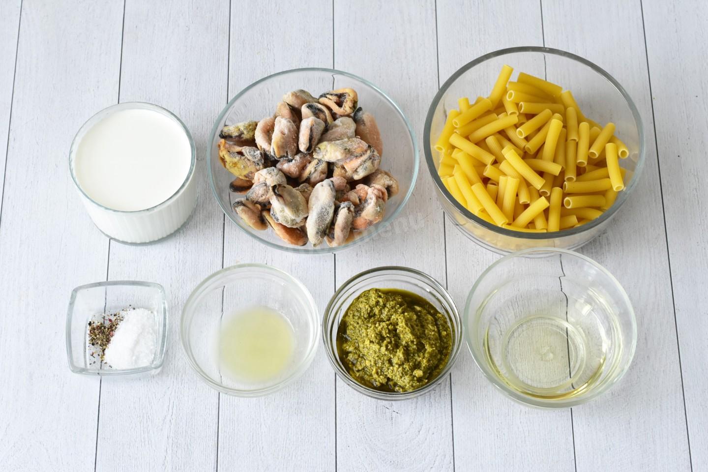 Сначала подготовьте необходимые ингредиенты по списку. Если используете замороженные мидии, необходимо предварительно правильно их разморозить на нижней полке холодильника. Подробнее о разморозке читайте в конце рецепта. Можете готовить пасту с мидиями в створках. Подробнее о том, как это сделать, вы можете почитать в конце рецепта.