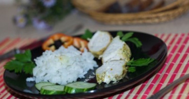 Готовое куриное филе извлеките из духовки и выложите на подготовленную тарелку. Нарежьте на кусочки и угощайтесь. Приятного аппетита!