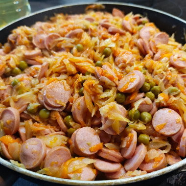 Отличный рецепт. Залежалось пол качана капусты в холодильнике, сбегала за сосисками. Приготовила ммм... Вкуснышка. Я в свой вариант приготовления добавила консервированный горошек. Близкие оценили 👍