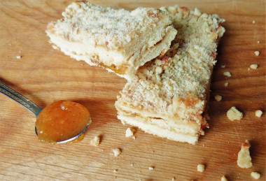 Искала, что можно приготовить к чаю. Заинтересовал меня рецепт пирожного песочного с повидлом. В состав входят самые простые продукты. Джем у меня был, правда не яблочный, а абрикосовый.