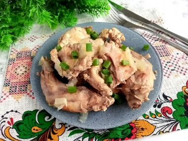 Всей моей семье понравился кролик тушеный с луком по этому рецепту. Мне как раз нужен был вариант без использования моркови и томата.