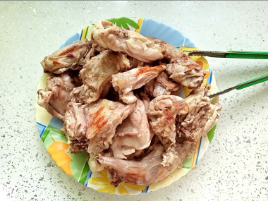 Готовить решила в мультиварке - это удобно. Кролика разделала на части и вымочила в холодной воде. Воду периодически меняла, всего это заняло часа три. Но все зависит от возраста животного.