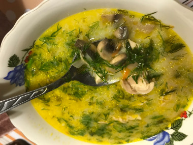 Спасибо автору за рецепт! Муж сказал, что такой суп надо подавать в ресторанах. Сырный суп с курицей и грибами - супер вкусно!