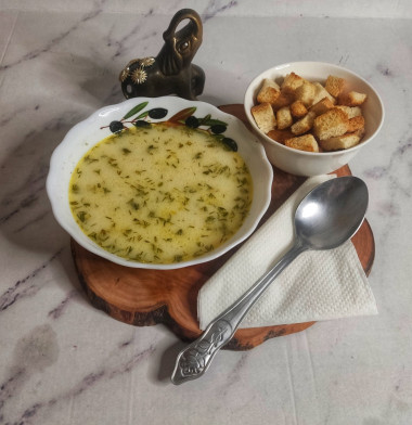Ещё обжарила кусочки батона и при подаче посыпала сухарики в суп!