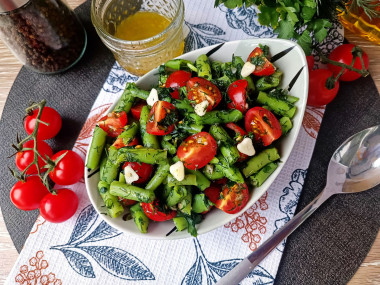 Увидела интересный рецепт салата со стручковой фасолью и помидорами — как раз к ужину хотелось приготовить какой-нибудь простенький салат.