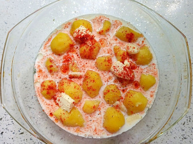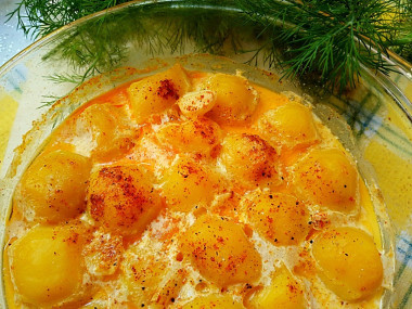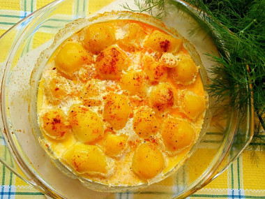 Такие рецепты очень выручают, когда нужно приготовить гарнир, а крупы и макароны надоели) Рецепт картошки в молоке в духовке привлёк меня прежде всего простотой приготовления. А еще мне нравится запекать именно "подваренную" картошку, на получается нежнее и приятнее по консистенции. Картошку я взяла мелкую. А молоко заменила 10% сливками, которые разбавила пополам водой. Зубки чеснока разрезала на 2-3 части, уложила между клубнями. Ну и сливочного масла добавила. От себя добавила копченую паприку, присыпала сверху. Очень вкусно получилось, детям тоже понравилась такая картошка! Она такая нежная, сливочная и при этом остро пахнет чесноком) Вообще запах при запекании очень аппетитный был. Мы ели картошку горячей. Но осталось несколько штучек и при остывания молочно-сливочная смесь продолжала впитываться в картошку, так что она стала еще сочнее и насыщеннее) Спасибо за рецепт!