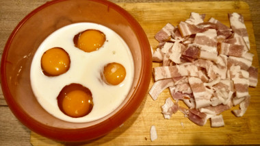 Как сделать омлет с беконом? Подготовьте все необходимые ингредиенты.