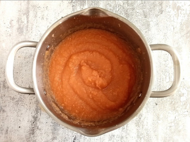 Переливаем яблочное пюре в кастрюлю и доводим до кипения на небольшом огне.