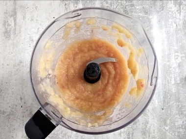 Поместите яблоки в блендер, добавьте воды и превратите наши яблоки в пюре.