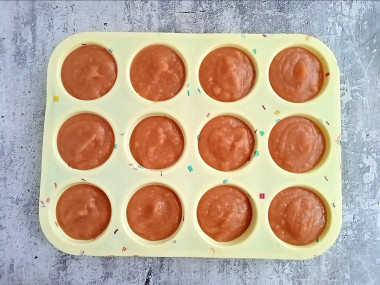 Подождите, пока пюре остынет до 40 градусов, добавьте туда мед и хорошо перемешайте. Затем можно разлить по формочкам или в противень.
