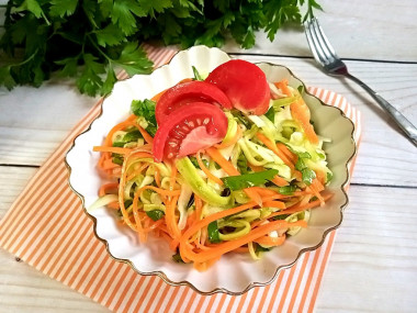 Отличный салат из свежих сырых кабачков на каждый день, мне понравился. Из молодых кабачков пробовала корейский салат из кабачков и моркови.