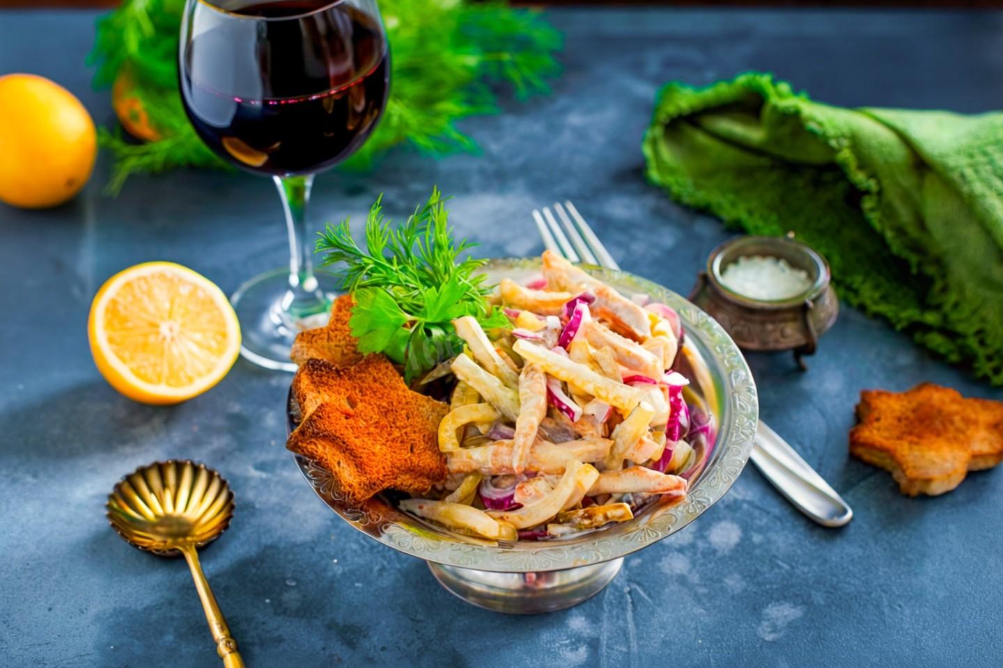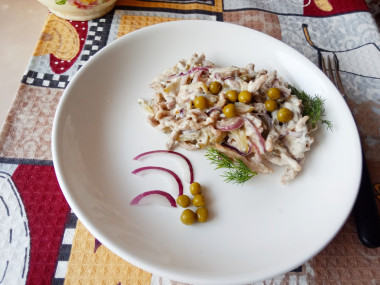 Также в качестве заправки можно использовать не только майонез, но и сметану или натуральный йогурт. Их можно взять по отдельности либо смешать с майонезом в любой пропорции на свой вкус - это снизит калорийность блюда.