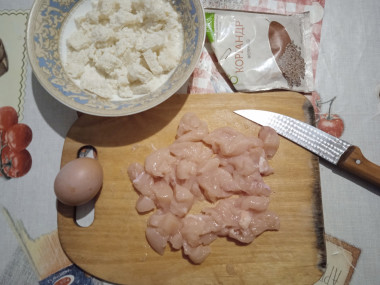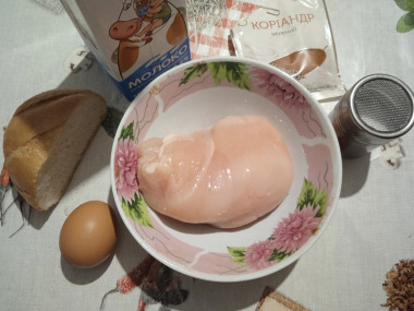 Теперь займитесь непосредственно суфле. Подготовьте продукты для него. Филе возьмите от грудки, лучше, если оно будет охлажденным, тогда суфле получится сочнее.