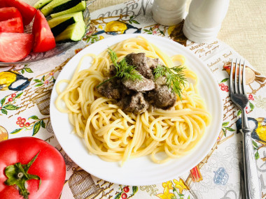 Готовится очень легко, обжарила печень с луком, приготовила сметанный соус и протушила всего 5 минут. Я люблю натуральный вкус печенки, поэтому из специй добавила только соль.