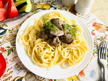Подавайте печень индейки в сметане с любым гарниром. Приятного аппетита!