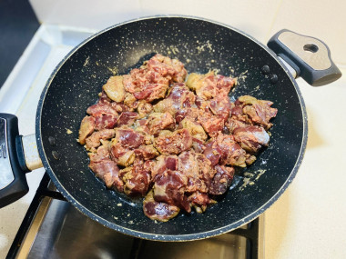 Тушите печень индейки при слабом кипении около 5 минут, периодически помешивая.