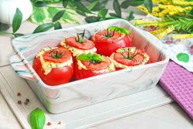 Запеченные фаршированные помидоры с сыром и чесноком в духовке.