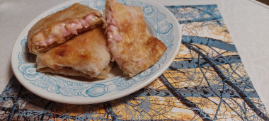 Приготовила сегодня на перекус лаваш с колбасой и сыром на сковороде по этому рецепту. Всё для этого блюда нашлось у меня в холодильнике