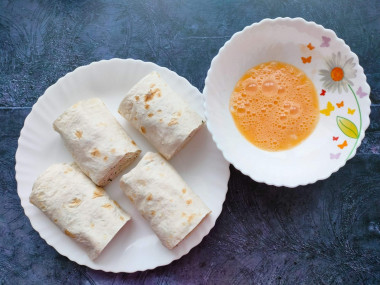 На сковороде разогрейте небольшое количество растительного масла. В глубокую миску вбейте яйцо и слегка взбейте его вилкой. При желании немного присолите его. Каждый кусочек нарезанного лаваша обмакните в яйце с двух сторон и выкложите на разогретую сковороду.