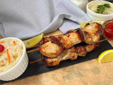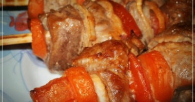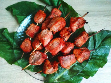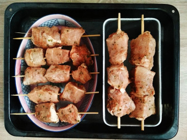 Для маёвки замариновала шашлык по этому рецепту. Но по метеопричинам до дачи мы так и не доехали. И вот нашла на сайте этот замечательный способ приготовления шашлыка на противне в духовке из свинины. Вымочила в воде деревянные палочки, правда, не так долго как требуется. Соорудила конструкцию, чтобы мясо свободно висело. Запекала его в духовке, периодически переворачивая шпажки в разные стороны. Ориентировалась не на определенное время, а на внешний вид шашлычка, так как у меня куски мяса были крупные, соответственно и время приготовления увеличилось. Когда шашлык хорошо зарумянился со всех сторон, вынула его из духовки и подавала горячим прямо на деревянных шпажках. Отличный способ, очень понравился. Шашлык по вкусу не уступает приготовленному на мангалах, только выраженного запаха костра не имеет. Единственный совет - лучше нарезать мясо кусочками поменьше, чтобы их было удобно размещать в духовке и свободно переворачивать на палочках. С таким рецептом можно устраивать маёвку и в любое время года, и в любую погоду! Спасибо за идею!