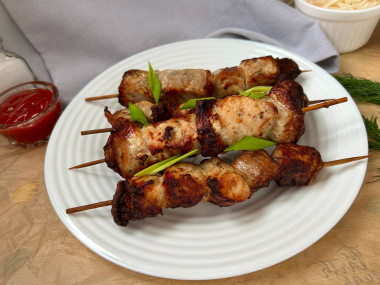 Готовые шашлыки подрумянятся. Переложите их на блюдо и подавайте к столу. Приятного аппетита!