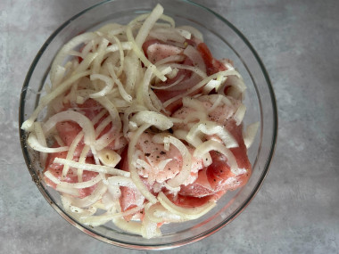 Как сделать шашлык на противне в духовке из свинины? Подготовьте для этого необходимые ингредиенты. В качестве мяса свинины выбирайте шею или вырезку. Такое мясо не будет сухое после запекания.