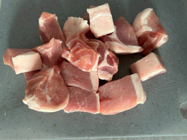 Мясо нарежьте на небольшие кусочки, примерно 3*3 или 4*4 см.