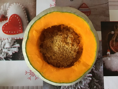 Не советую брать большую тыкву, она не приготовится за два часа, придется запекать ее дольше. Лучше даже взять совсем малюток и сделать в каждой по порции.