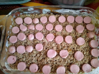 Добрый день.У меня фарш посередине, ещё сосиски наложила,нижний и верхний слой картофель,сверху сыр, тоже вкусно,но по вашему рецепту немного быстрее получится.