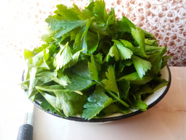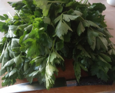 Решила заготовить сельдерей листовой на зиму. Для салатов зимой не проблема купить стебли сельдерея, а вот для супов и вторых блюд прекрасно подойдёт домашний, листовой сельдерей. В этот раз буду его замораживать и солить.Срезанную зелень промыла под проточной водой, просушила, листочки отделила от стеблей. Для засолки сельдерей нарезала помельче, хорошо посолила, немного перетерла руками и плотно утрамбовала в подготовленную баночку. Удобнее брать банки небольшого объема. При добавлении такой заготовки в суп необходимо учитывать, что приправа очень соленая и поэтому бульон должен быть недосоленным. Зато аромат сельдерея прекрасно сохраняется.